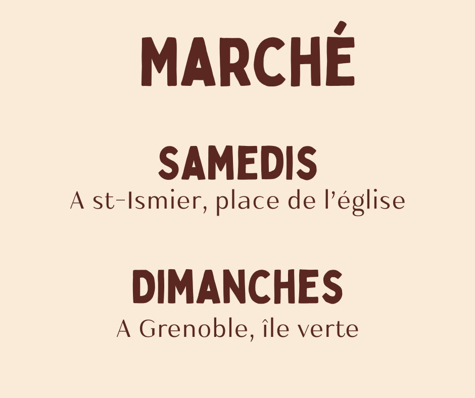 A Saint-Egrève Au Pré de chez Nous: livraison les vendredis entre 11h et 12h; samedi horaires d’été du magasin: entre 15h et 15h30