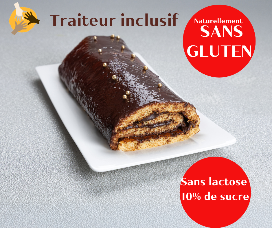 Les bûches à base de farines de manioc et de souchet (à IG 35) sont très moelleuses et sans gluten, sans lactose, 10% de sucre.