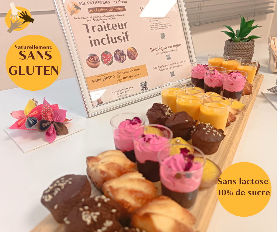 Les Tartelettes Citron et poudre de moringa, à base de farine de manioc sans gluten, sans lactose, et 10% de sucre. Le Moringa est antioxydante, riche en vitamine A, aide à réguler la glycémie et le cholesterol.
